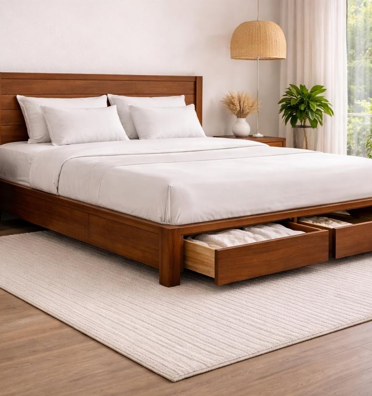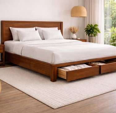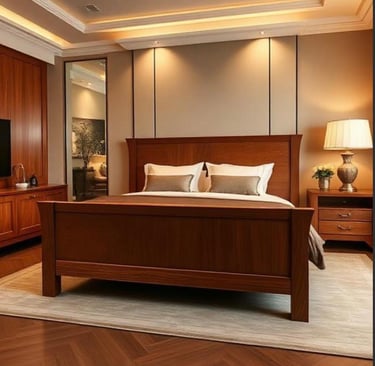 our bed frames are designed to bring elegance, strength, and long-lasting comfort to your bedroom. With its rich natural grain and refined finish, each piece adds a warm, luxurious touch to modern and classic interiors.