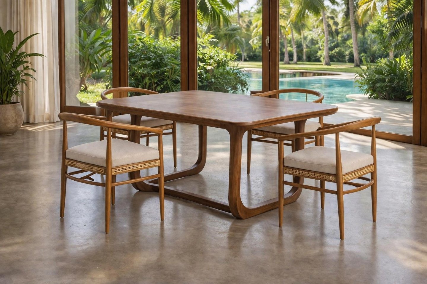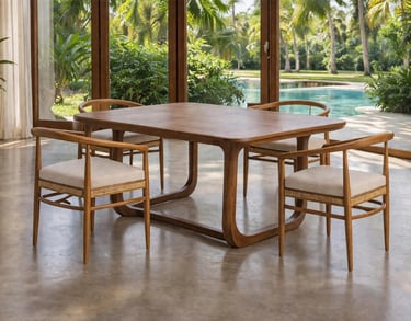 Crafted from 100% solid teak wood, our dining chairs combine elegant design with lasting durability. Designed to complement luxury dining spaces, each chair showcases the natural beauty of teak grain while providing exceptional comfort and support.